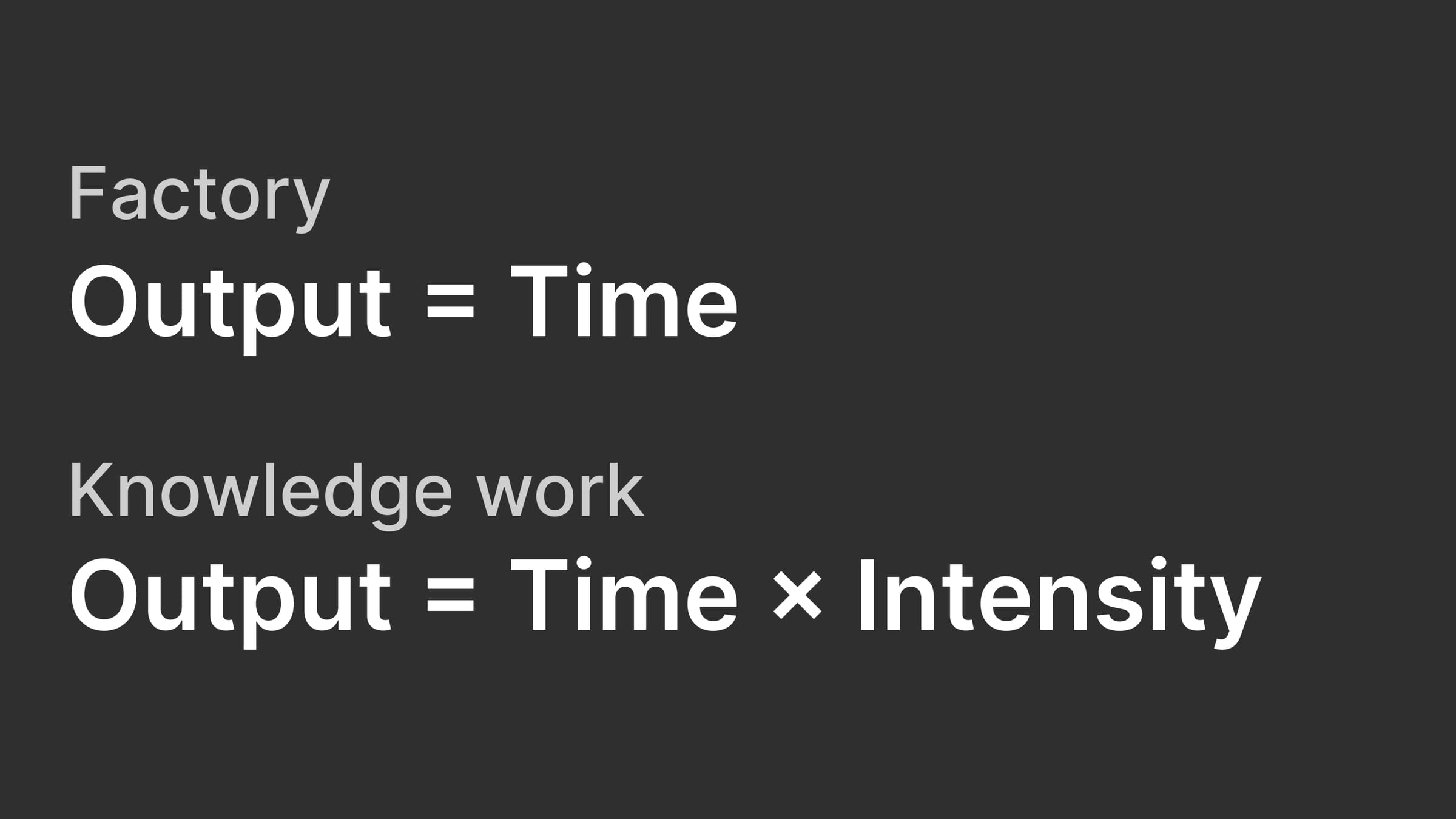 In a factory, output was determined time input. In knowledge work, output is determined by both time and intensity input.
