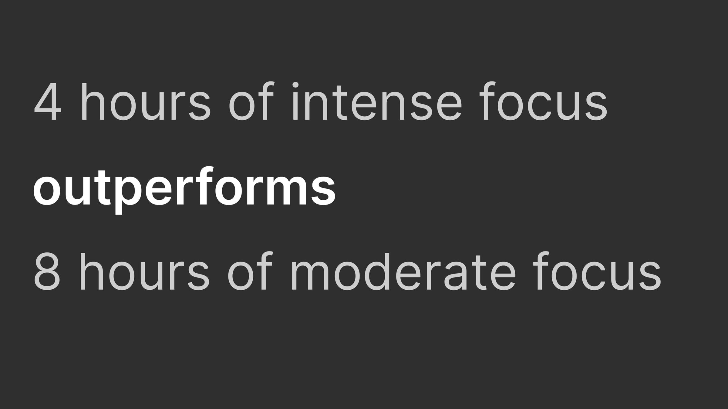 4 hours of intense focus outperforms 8 hours of moderate focus.