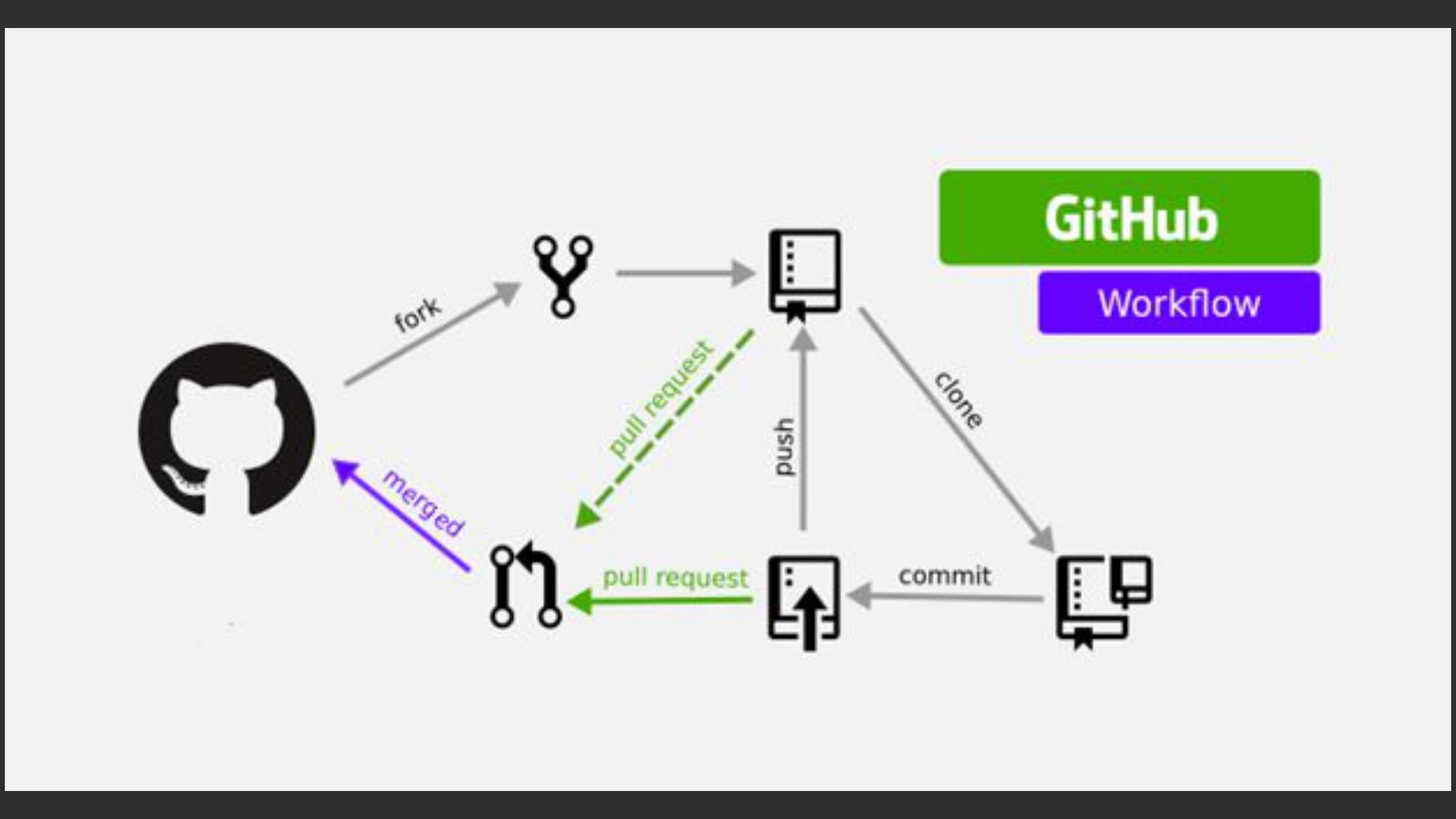 Software work is typically organized into Issues. Developers get assigned an Issue or pick an unassigned one to work on. The developer writes code and then submits it for review. Github assigns reviewers who leave comments and either approve or reject the code. Reviews often include automated tests, which enforce expected functionality and style. Accepted code can get merged and deployed, marking the motivating Issue as closed. Git maintains a log of who did what work and when.