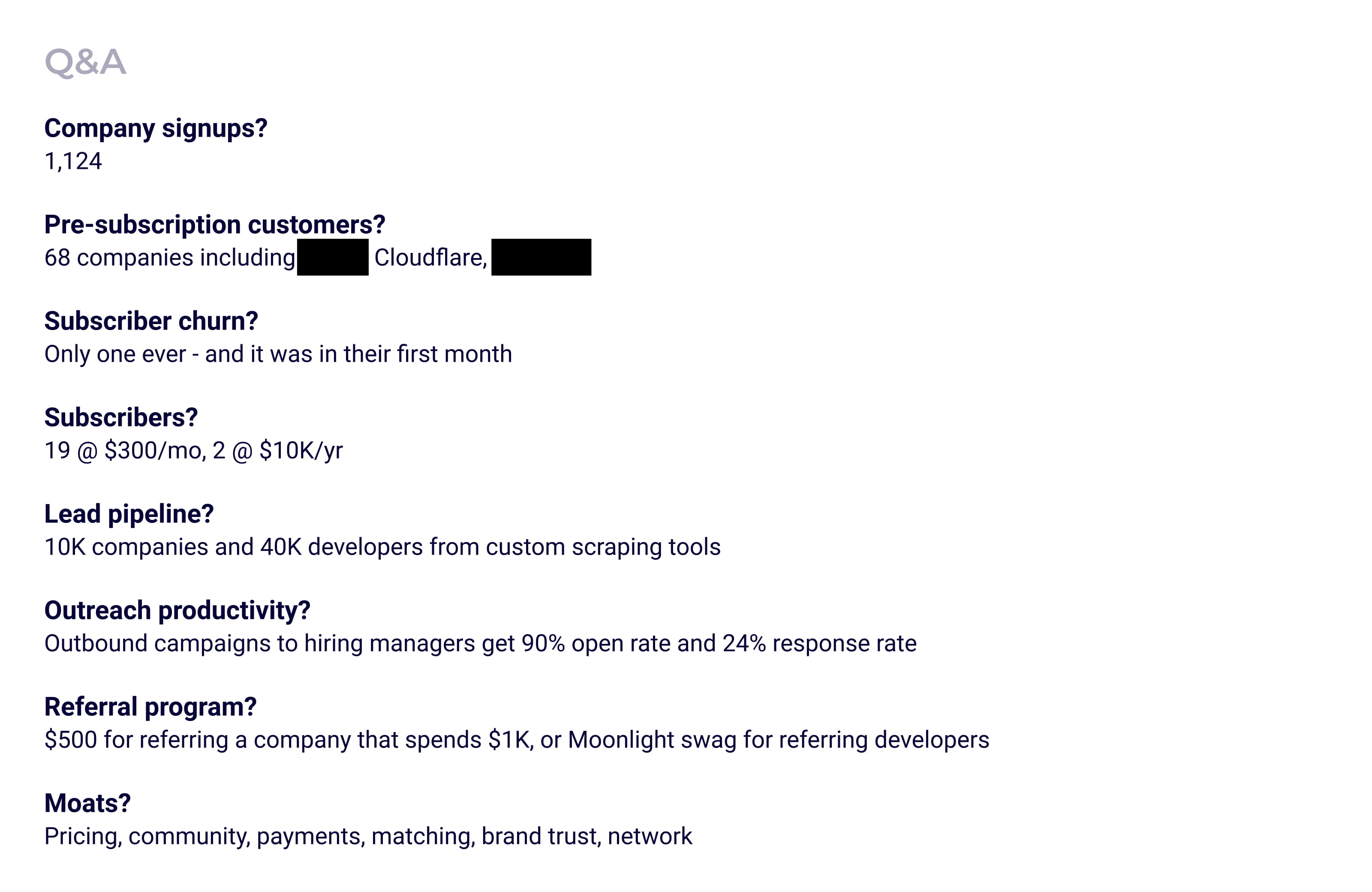 We plan to expand partnerships in the future. Moonlight is currently a Stripe Verified Partner. We are actively in pilots with some coding schools. And, we are building out a certifications module so that we can co-market expert communities with companies who need "sales engineering"-style support.