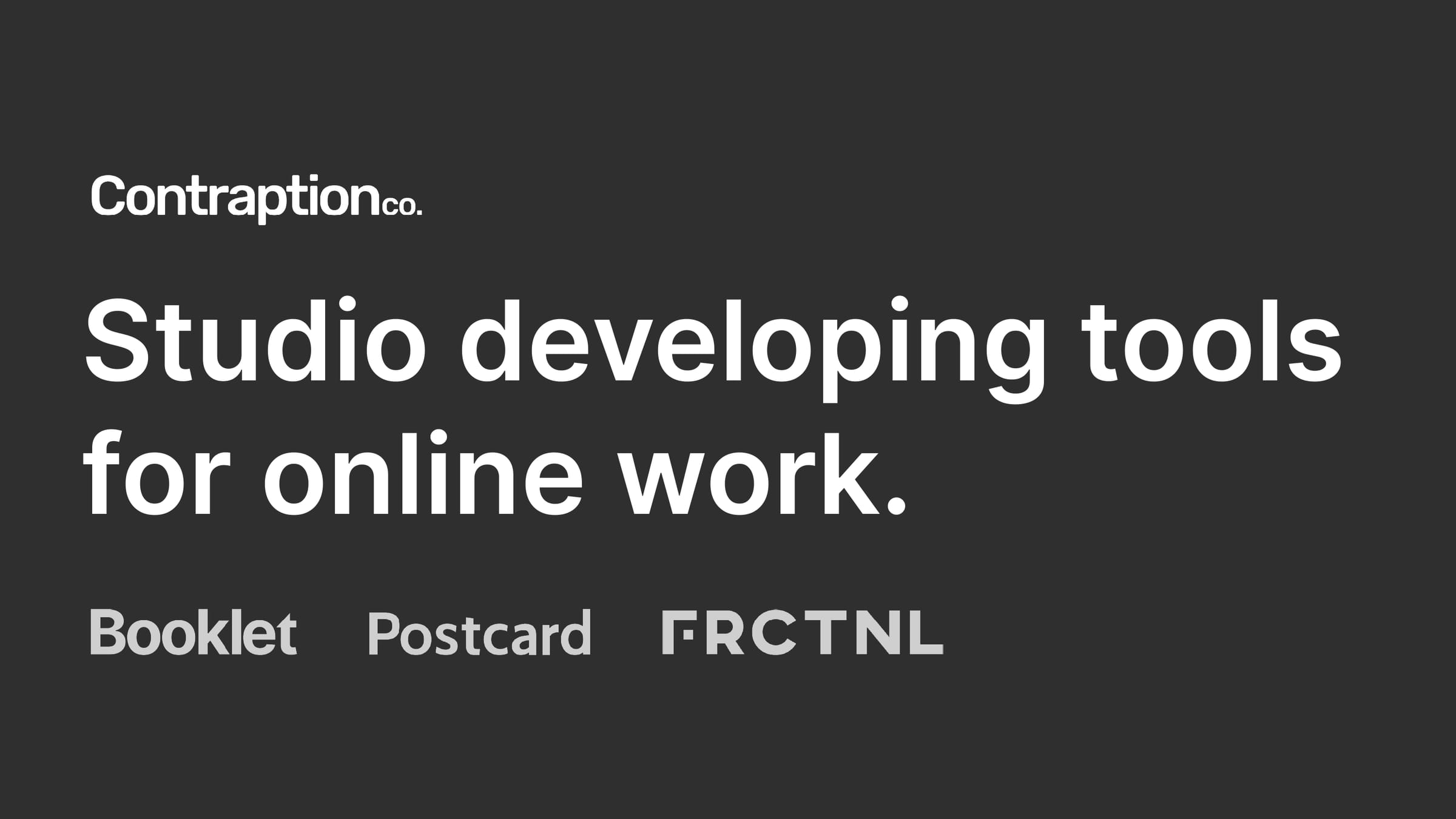 The Contraption Company is a product studio developing tools for online work. There, I build three main products. Booklet is an asynchronous community app that is alternative to chat. Postcard lets anybody make a personal website in five minutes. And FRCTNL is a community for part-time technology workers.