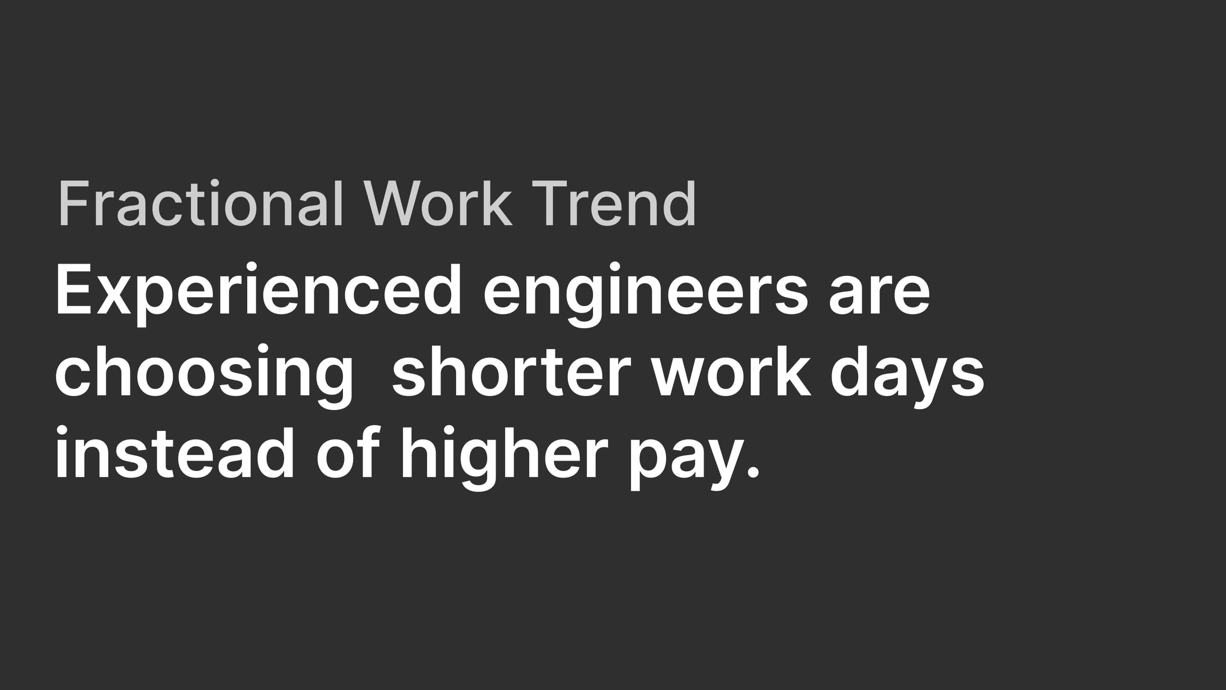 Fractional work trend: Experienced engineers are choosing shorter workdays instead of higher pay.